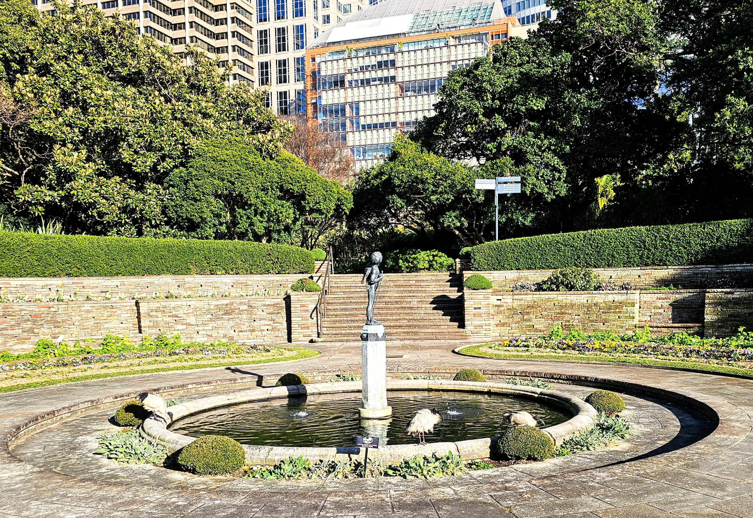 The garden was built in 1938 to celebrate the 150th anniversary of European settlement in Australia, serving to commemorate the memory of the nation’s pioneer men and women. The cupid fountain is also a favourite morning hang for Sydney’s own feathered philosophers: the ibis. Or, as they are known to the office workers of the city, the bin chicken.